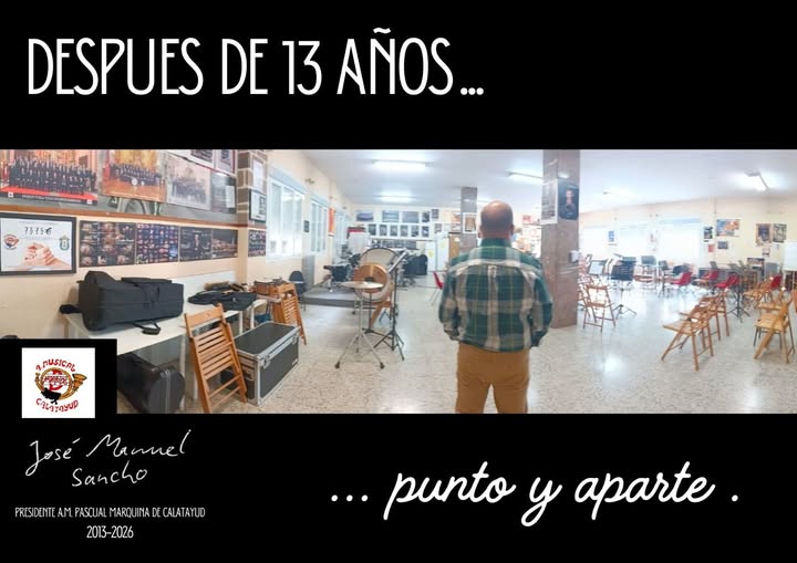 Carta de despedida de José Manuel Sancho como presidente de la A.M. Pascual Marquina de Calatayud. Después de 4.487 días —12 años, 3 meses y 12 días— pongo fin a una de las