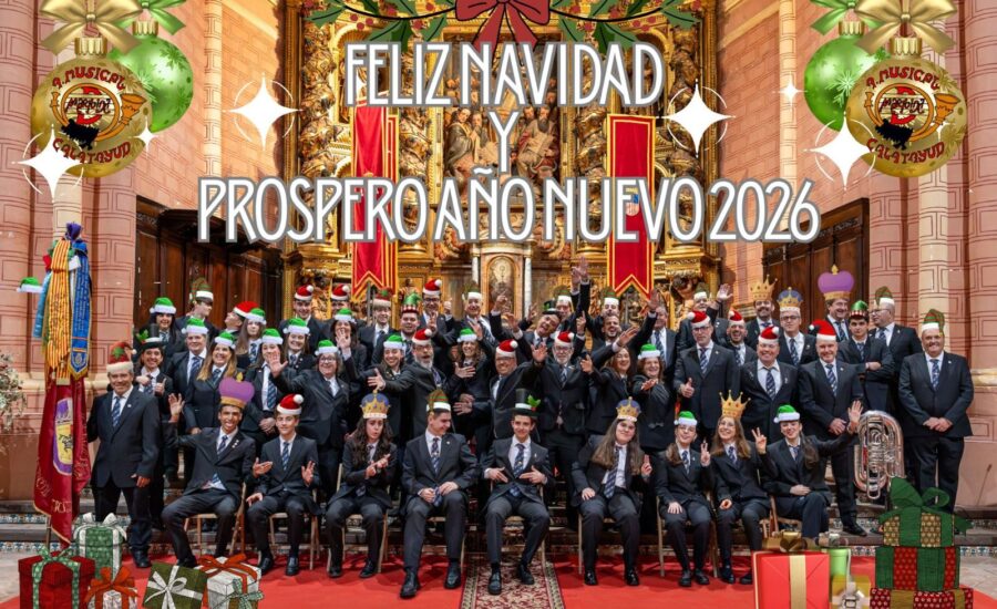 Desde la Agrupación Musical Pascual Marquina de Calatayud desearos una Feliz Navidad y un Próspero Año 2026. Que nuestra música llene de alegría y buenos sentimientos, todos nuestros momentos especiales